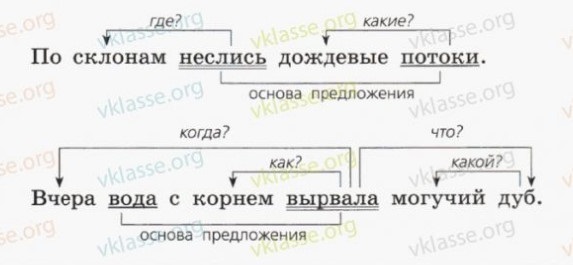 Схемы распространенных предложений,в которых показано как задаются вопросы от главных членов предложений второстепенным членам: